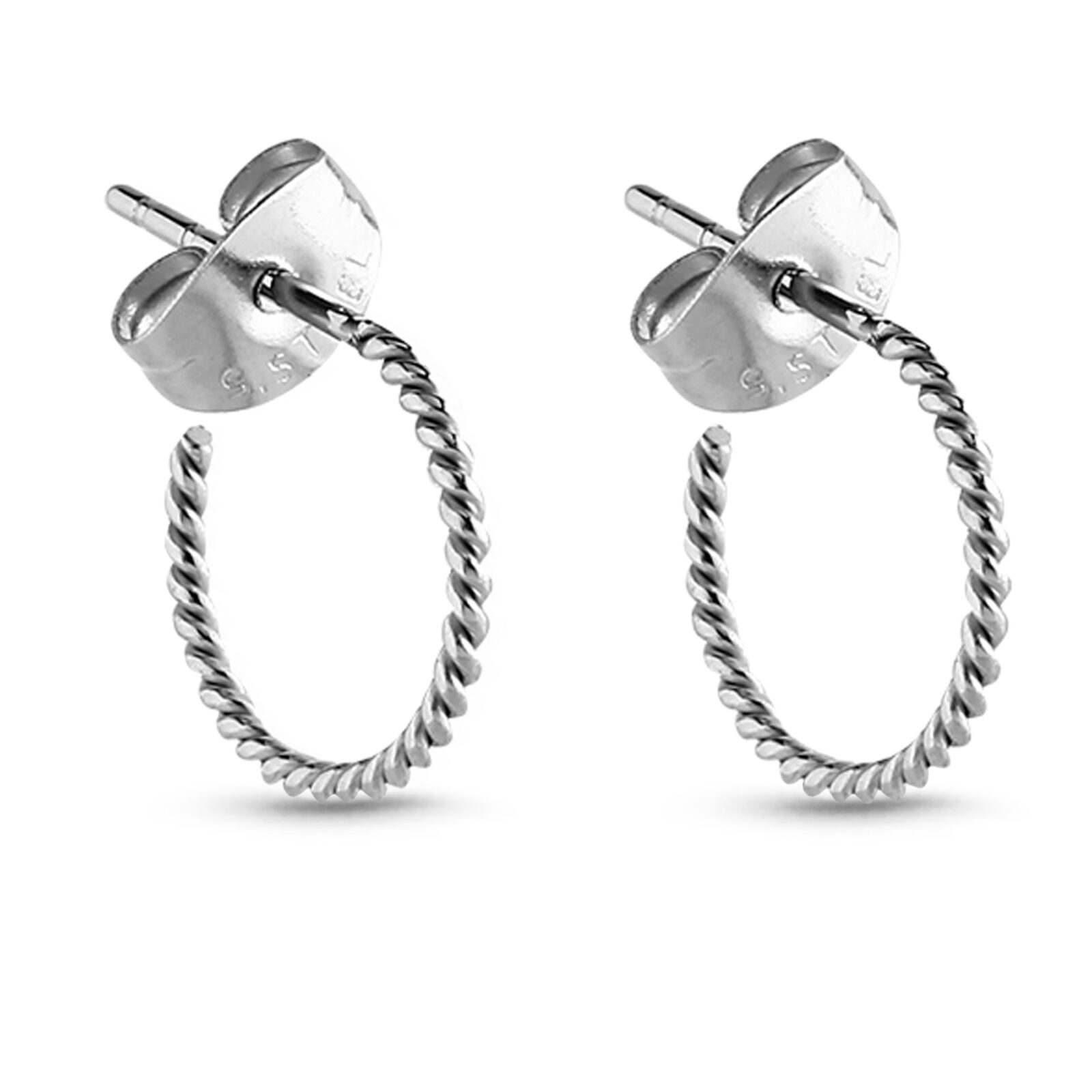 Twisted Hoop Butterfly Back Lobe Earrings 316L Surgical Steel