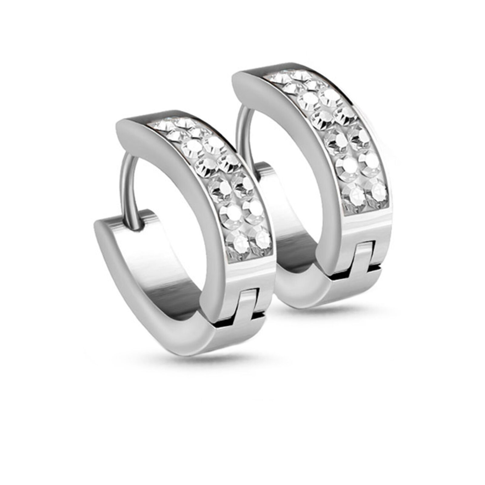 12 Stone Huggie Hinged Hoop Earring 316L Surgical Steel 18G