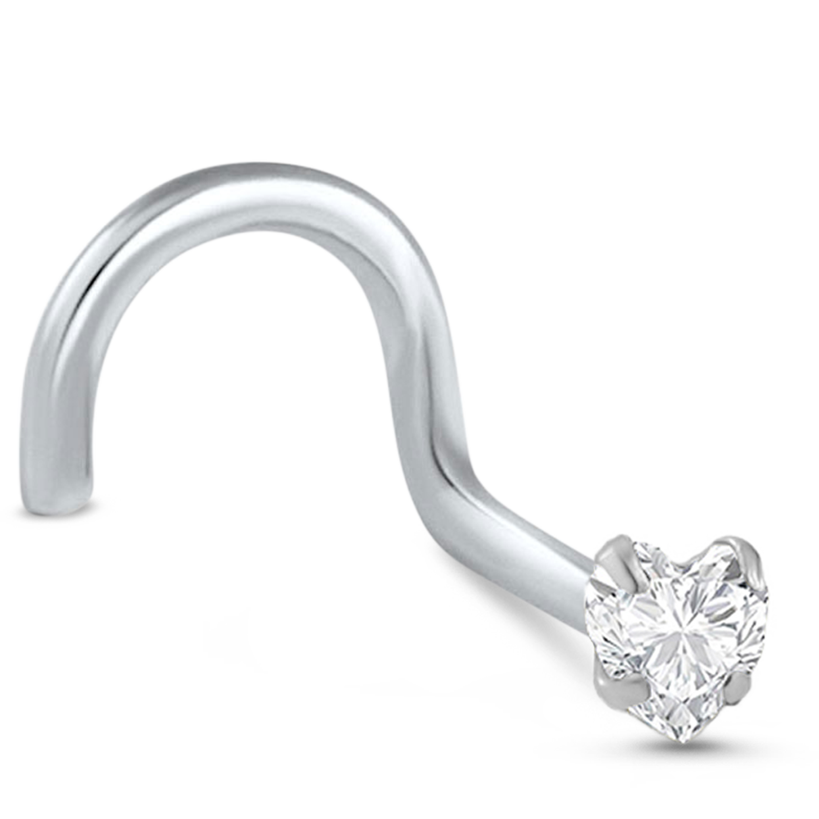 Heart CZ Prong Nose Stud 14K White or Yellow Gold