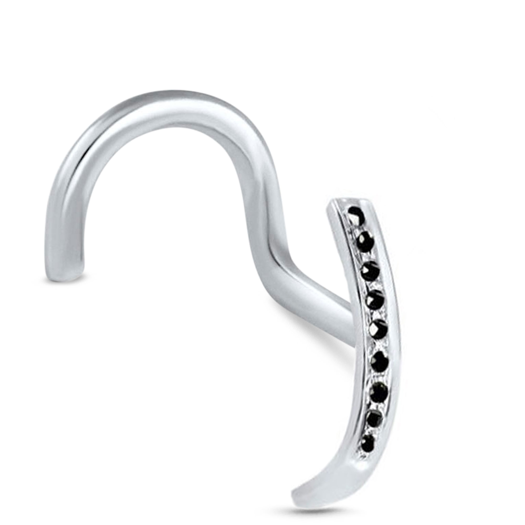 Strikingly beautiful. This 14K white gold nose screw features 9 stunning genuine black diamonds.
