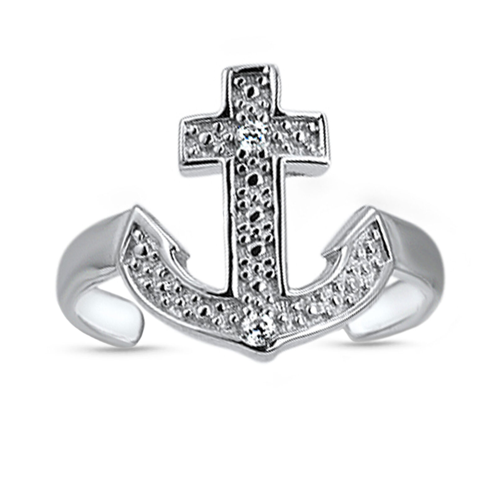 925 Sterling Silver Cross Anchor CZ Toe Ring