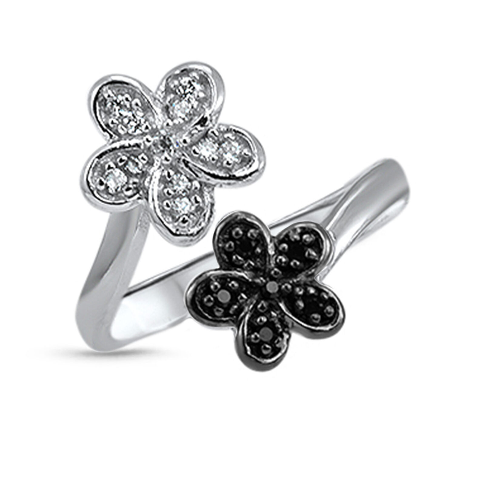925 Sterling Silver Black and Silver Flower Toe Ring