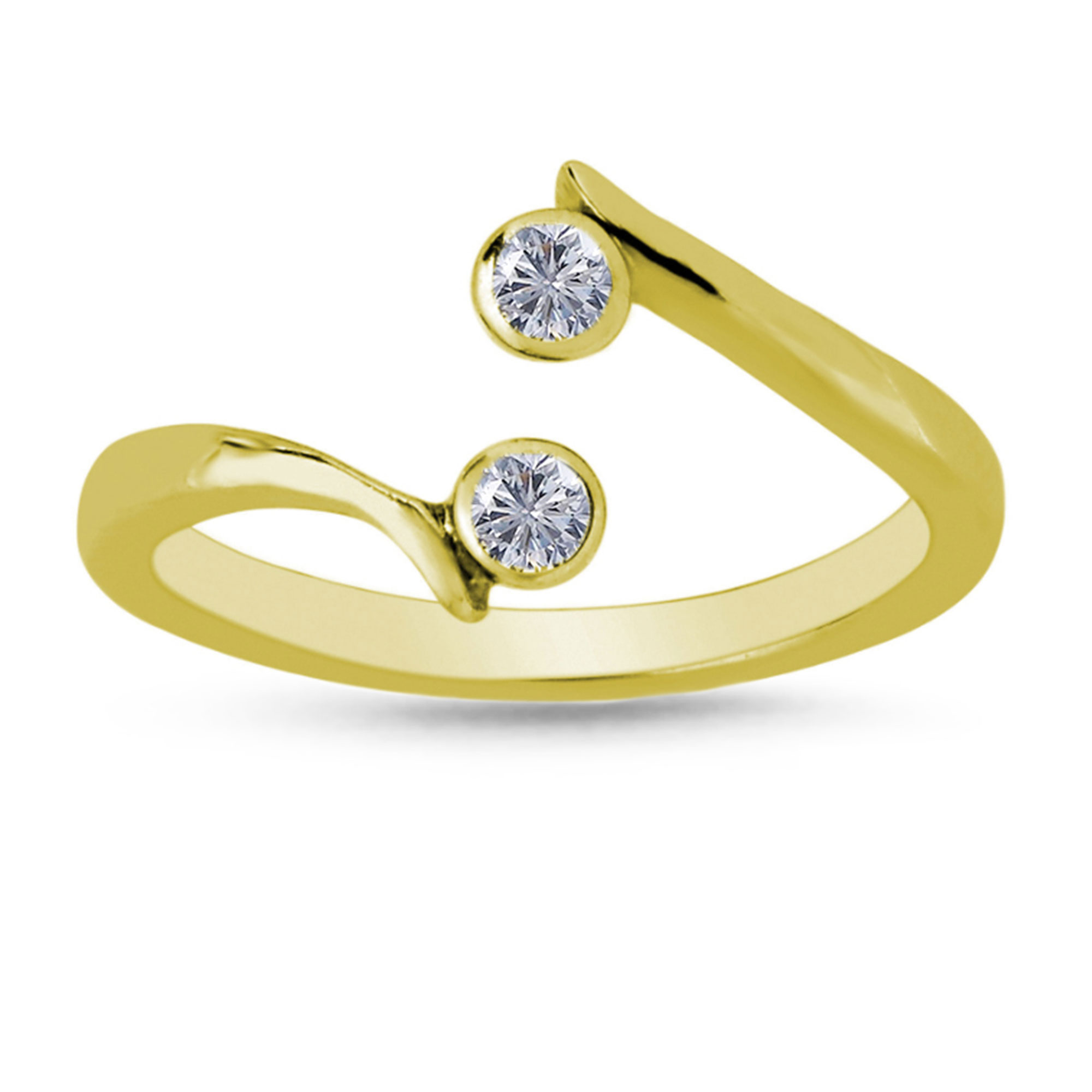 Two Dazzle. This beautiful toe ring is solid 10K yellow gold and features two sparkling cubic zirconia gemstones. The size is adjustable.